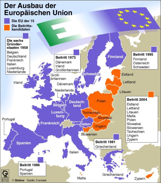 Die Europäische Linkseite. Hier links: Der Ausbau der Europäischen Union am 1.Mai 2004 !